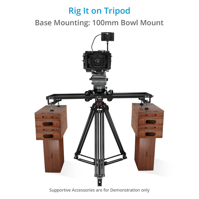 The precision-engineered wheel carriage can be equipped with 100mm, 150mm bowl mount & Mitchell plate, interchangeably, giving you versatile camera-head mounting options.
