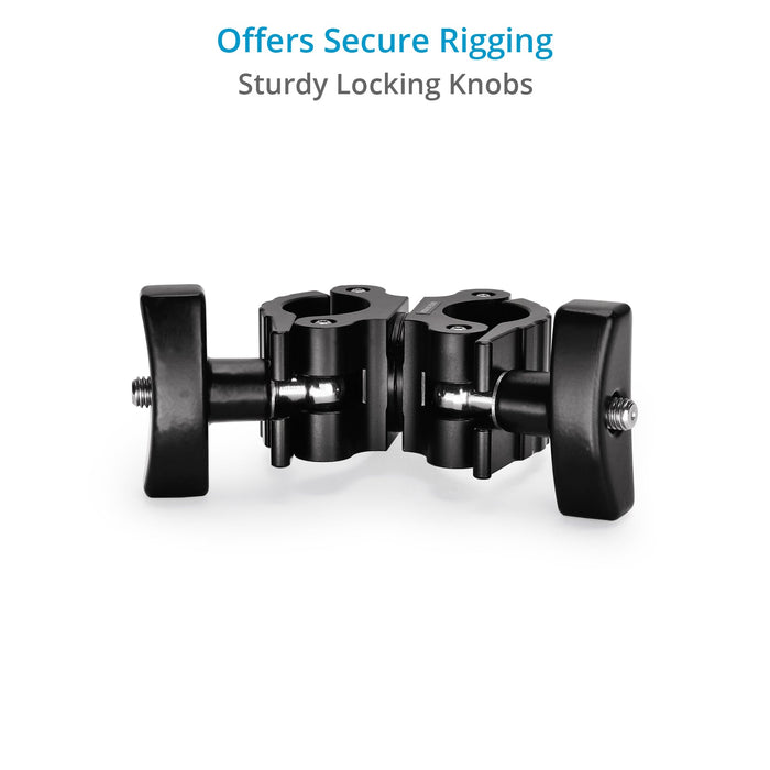 Proaim Double Swivel Clamp offers a secure and quick connection for scaffolds, trusses, speed rails, bars, and raods. Crafted from high-grade aluminum, it supports a maximum load capacity of 150kg (330lb), offering exceptional strength and durability for your rigging needs.