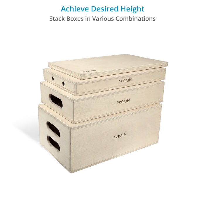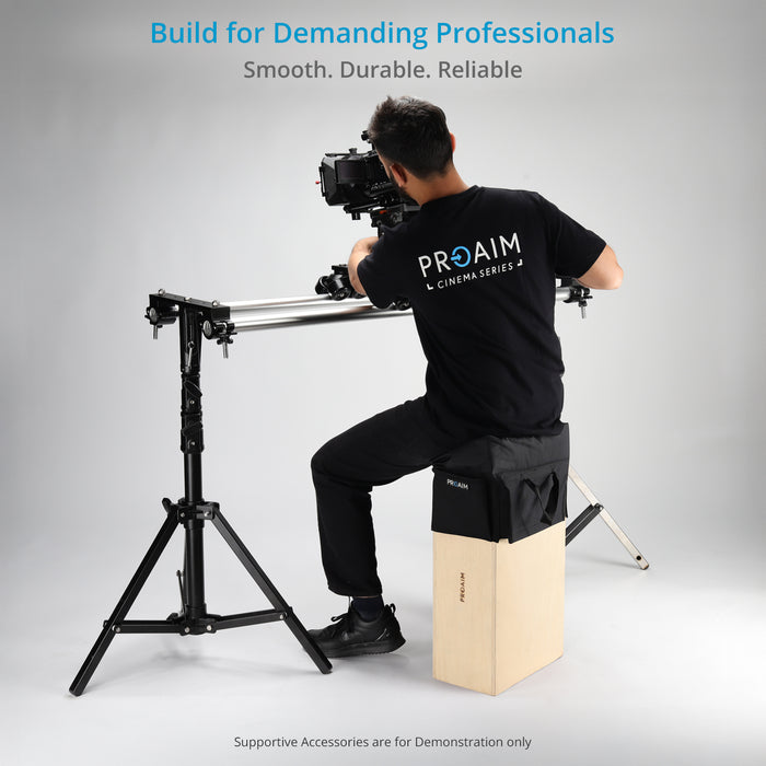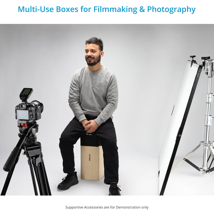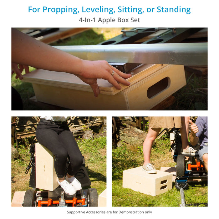 Give your production a lift with the Proaim Set of 4 apple boxes, the handiest tool to have on location or in the Studio. It is a 4-In-1 Apple Box Set with full, half, quarter, and pancake-sized apple boxes, all made of Plywood, which is meticulously hand-polished to warm tones for adding style to your productions. They come in handy as seats, as support for equipment, and are perfect for raising a prop, table, person, dolly track, camera, and much more. And you can stack and combine these apple boxes to achieve any desired height you want. Also, you can use the Proaim apple box seat cushion to transform your apple box into a nice, comfy, cushioned seat for your next shoot.