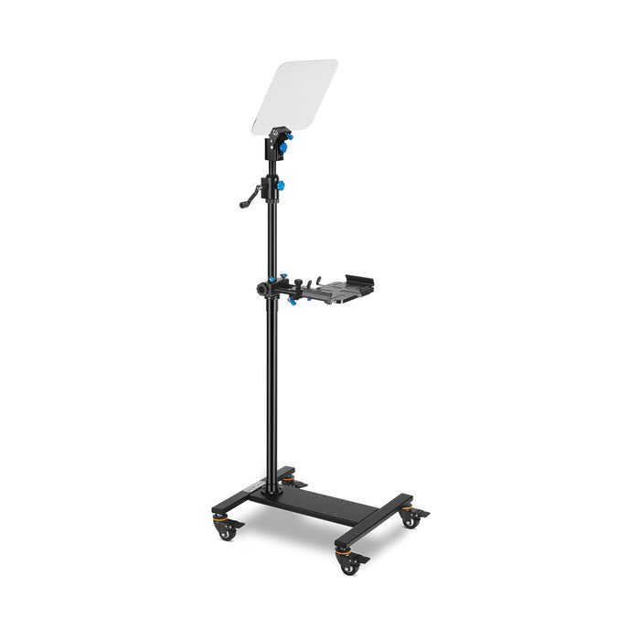 It features a teleprompter monitor, a high-quality beam splitter glass, a telescoping manual conference stand, and an I-pad holder.