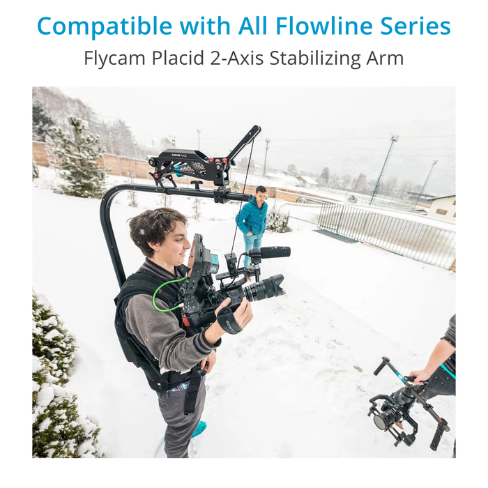 The Flycam Placid is a 2-axis Spring Arm that attaches to the end of your Flycam Flowline and assists in getting a Smooth Shot. It stabilizes and smoothens the shots when you are moving or running with the Flowline by eliminating Vibration and Motion Errors. The Flycam Placid pivots around its axis and provides side to side stabilization along with the Vertical Stabilization.