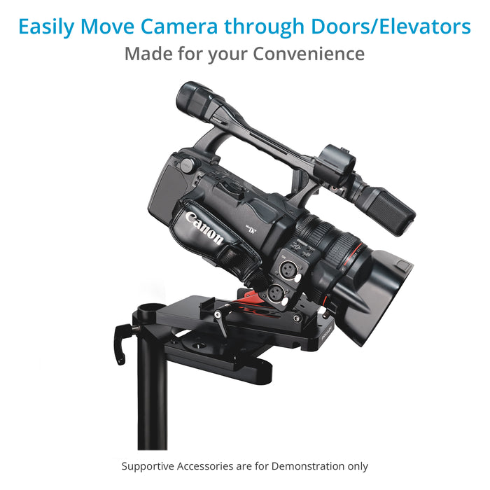 In addition to that, you can also pass your cart through the door and elevator without having to remove the camera/ rods and matte box, etc. Just rotate the plate in your convenient direction, and your problem is solved.