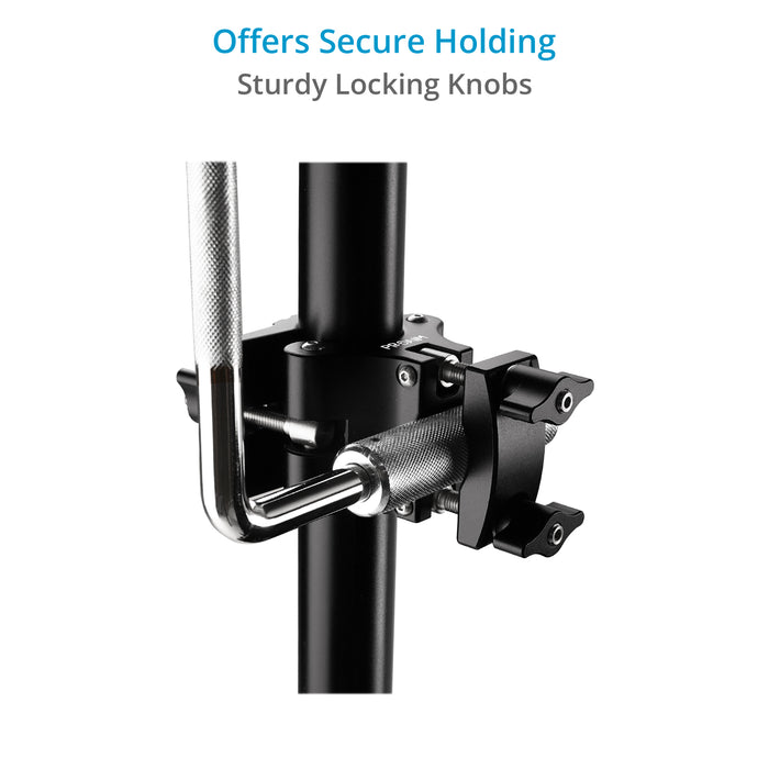 Proaim Multi-Stand Holder Clamp with L-rod is a perfect tool to carry or store any full-size Light stand /C-stand on your Camera Cart.