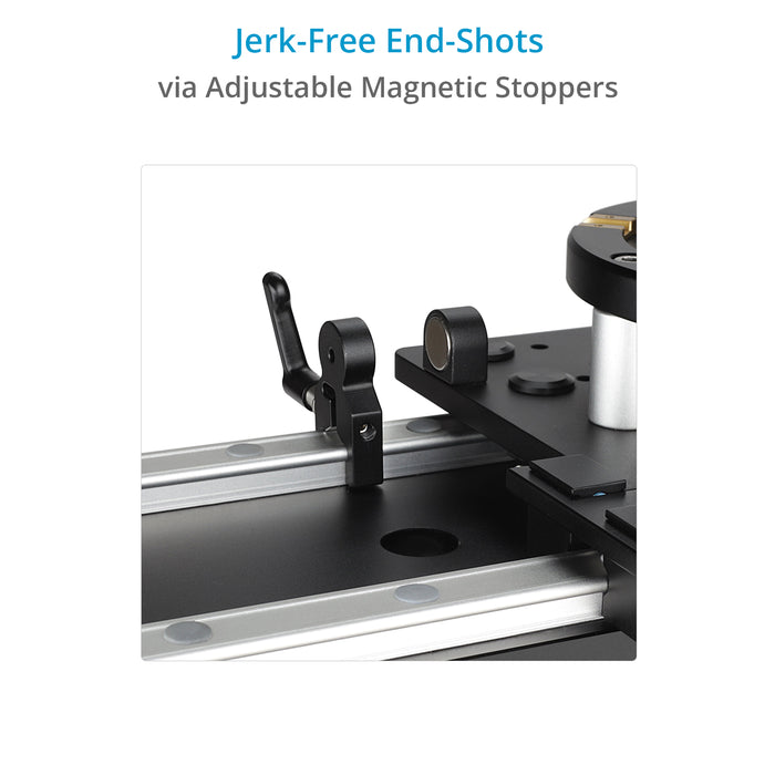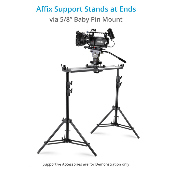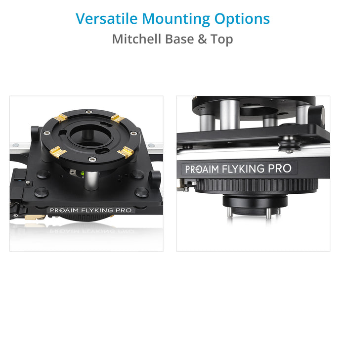Thanks to its Metalon-covered ball bearings, the slider delivers noise-free and flawlessly smooth shots in over-slung and under-slung camera configurations with its Mitchel base and top.