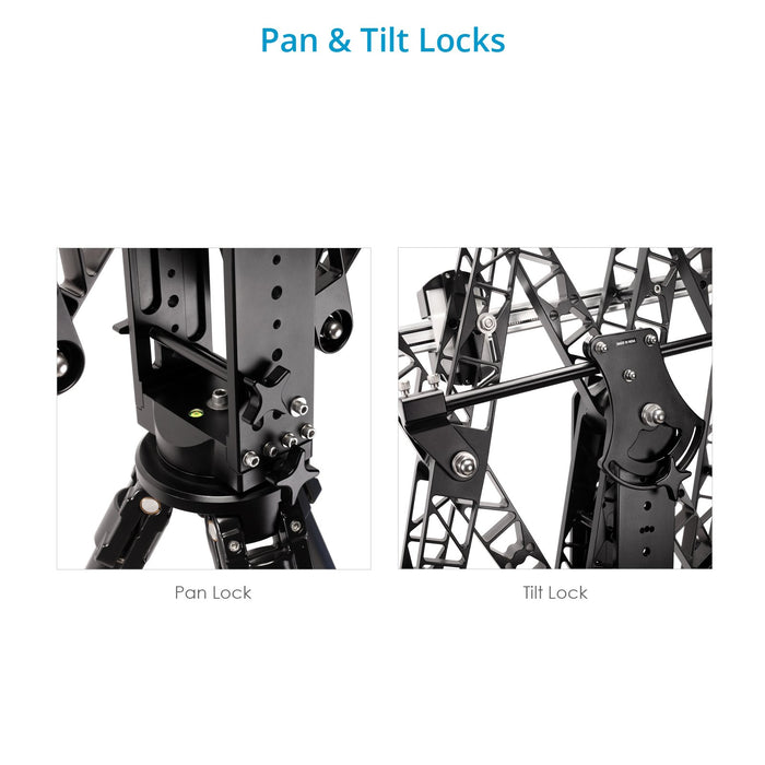 Pan Lock enables locking the jib’s pan movement for achieving high/low angle shots.