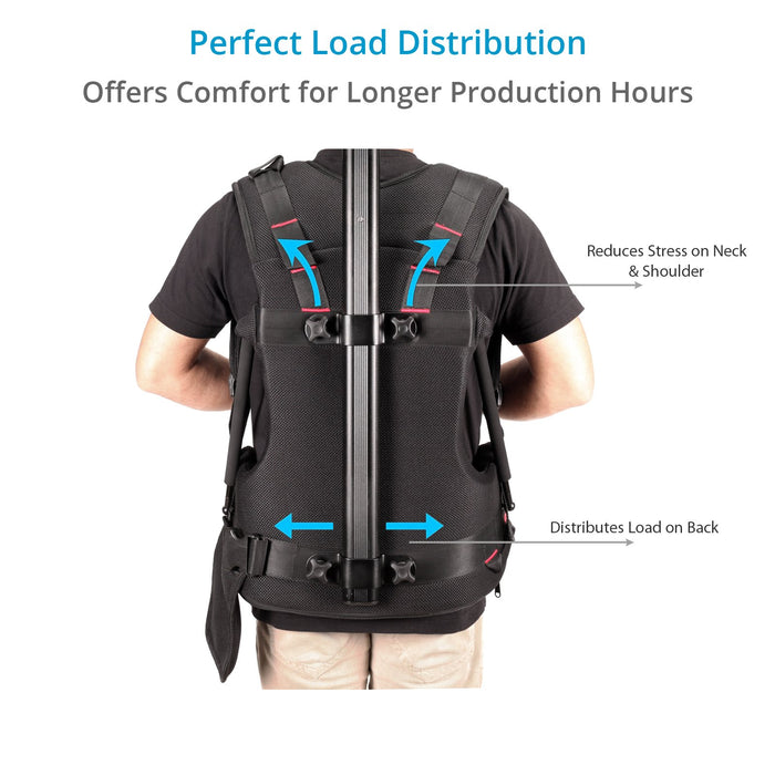The Flowline Vest has Multiple Layers of Padding which ensures more support around the waist, allowing you to mount large setups and shoot for longer duration comfortably. It has a flexible belt system & adjustable vest rods on sides which will enable a comfortable fit for all body types.