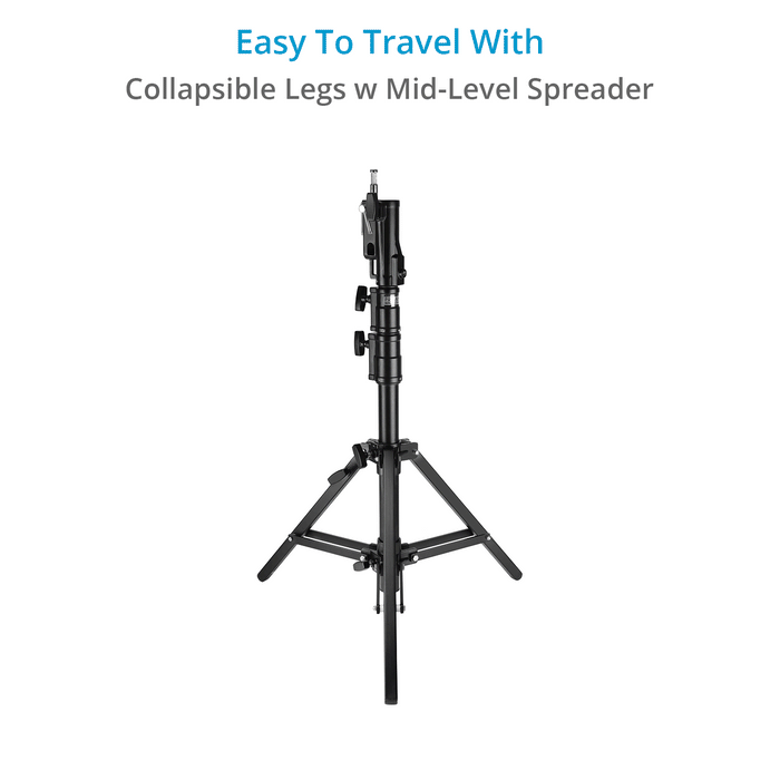 The stand folds to a compact 35.5” for easy transport and storage. It is ideal for moving between shoots or stowing away in your gear bag.