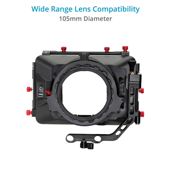 The swing-away design allows you to quickly move the matte box out of the way to check or change lenses, without having to remove the matte box from the support rods.