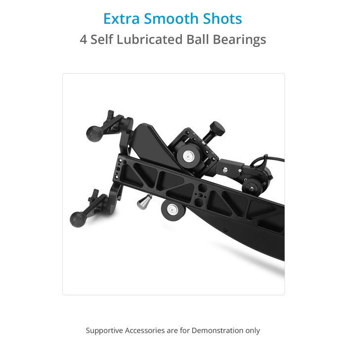 The firm quick-release camera plate is compatible with straight and curved track sliders and connects easily without removing the end feet.