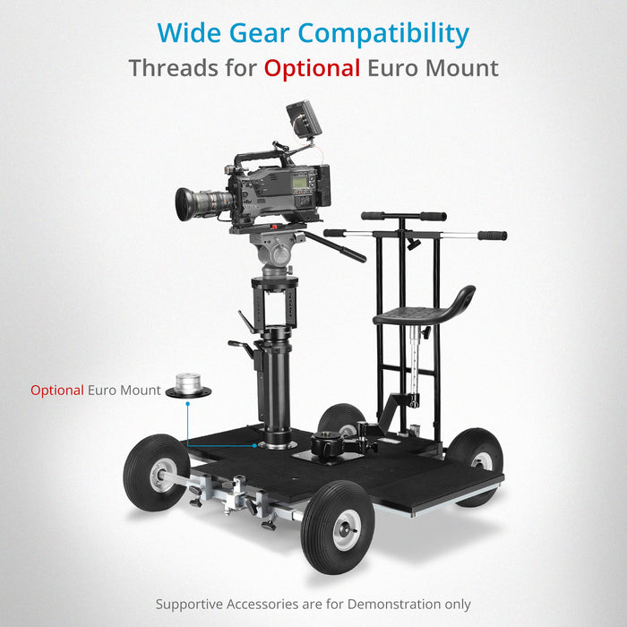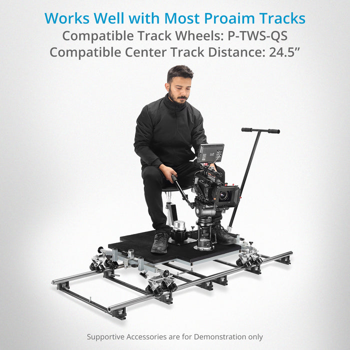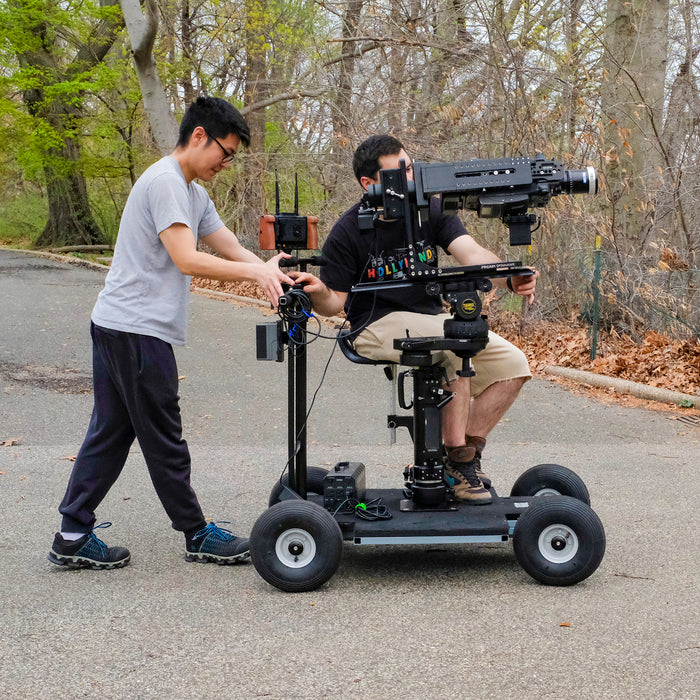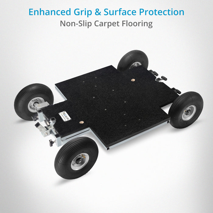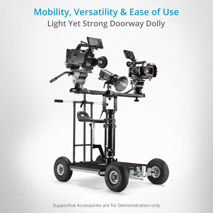Proaim Quad Prime Dolly delivers exceptional performance with its lightweight design, heavy-duty capacity, and versatile functionality. Significantly lighter than traditional doorway dollies, it offers easy-to-transport, quick setup, and effortless maneuverability on set.