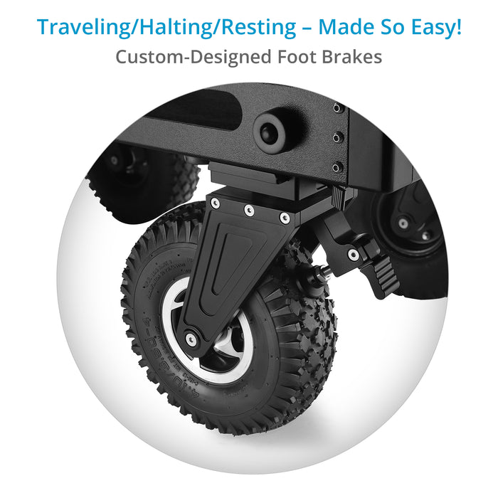 Rest easy when you park it—Victor Pro’s reliable foot brakes offer unwavering stability. These brakes are built to endure, maintaining their strength even as wheels wear over time, ensuring secure placement wherever you need it.