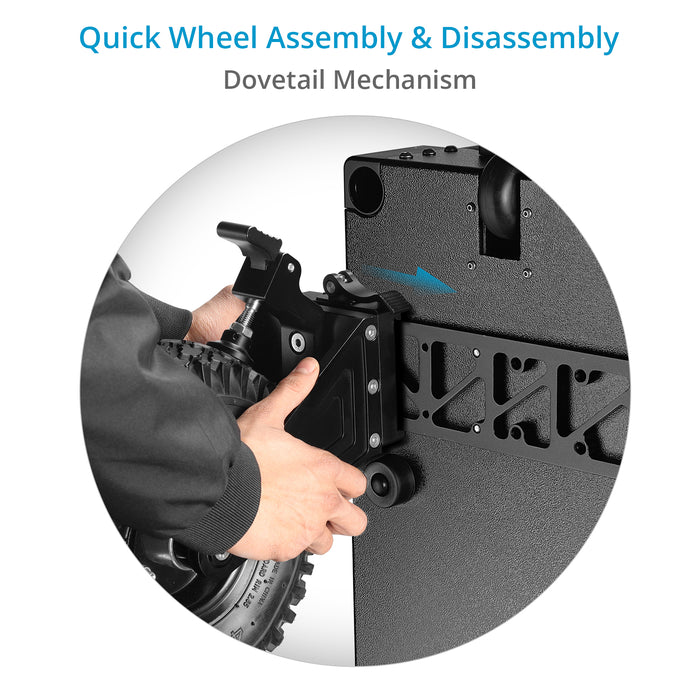 In just 2-3 minutes, the Victor Pro transforms from a compact 7” suitcase to a full-featured camera cart - No tools needed! Its collapsible design saves precious on-set time and provides travel-friendly convenience wherever you go.