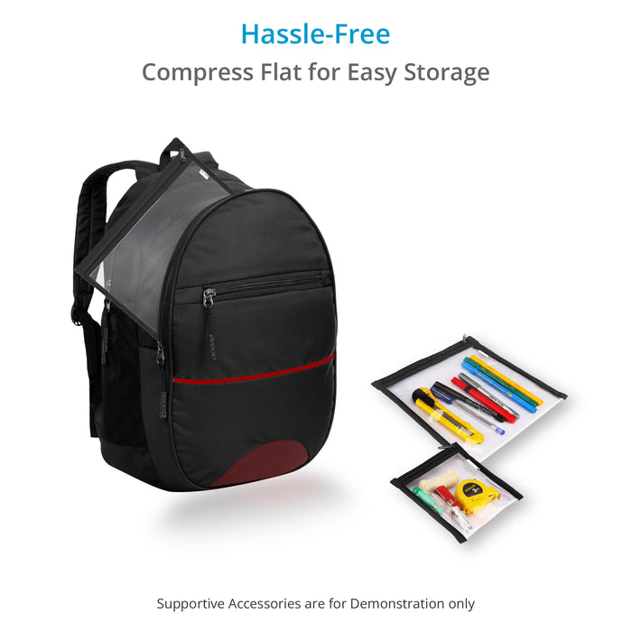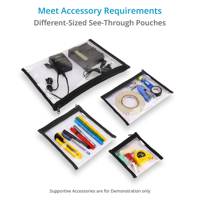 It's a collection of four different-sized see-through compact pouches that open wide and are clear at a glance, letting you find the exact accessory or tool you need in a brief time.