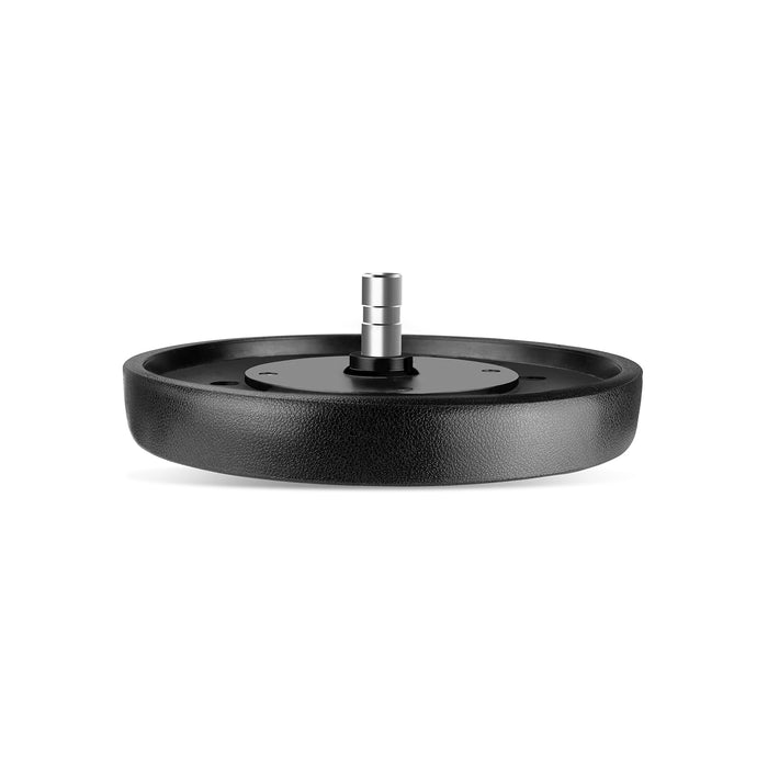 The round seat is compatible with the Proaim Dolly Turnstile and attaches to the dolly via Proaim Seat supports like combined or vertical seat arms, which allow for flexible positioning of the seat.