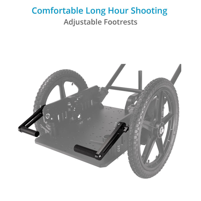 The Jockey Wheel allows the Rickshaw to be manoeuvred in a three-wheel configuration, precisely in tight spaces, and it also performs exact circles for round shots.