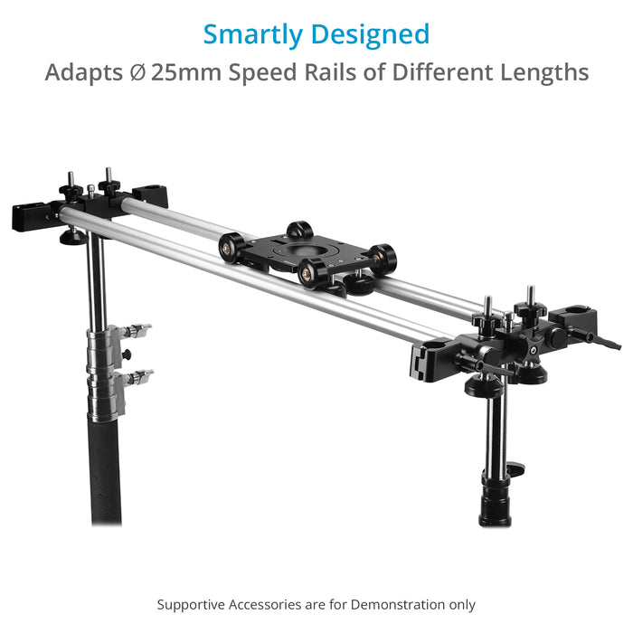 It comes with end-clamps that let you attach to any compatible speed rail and can be mounted on C-stands & tripods in seconds, allowing you to start filming in a flash.