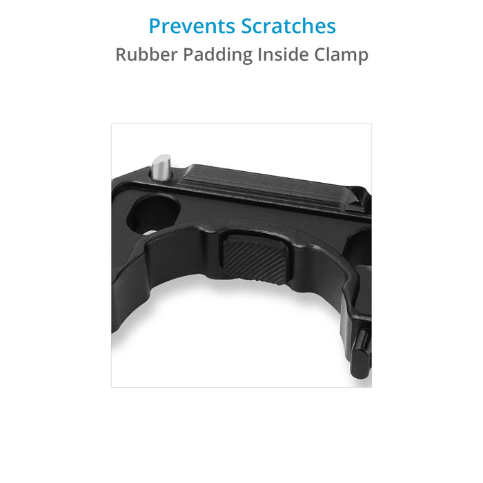 You can secure your gimbal around the multifunctional clamp using the two M4 screws while the rubber cushioning on it prevents scratches on the gimbal.