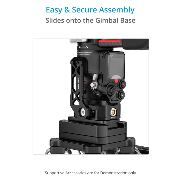 It allows you to mount your gimbal to a diverse number of gears such as tripods, jibs, sliders, car mounts, etc.