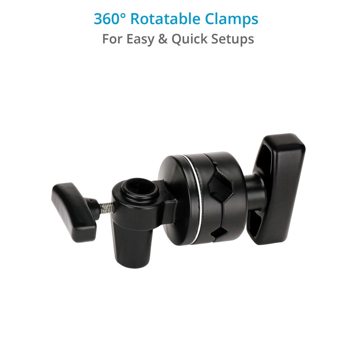 The Megagrip is equipped with custom-designed clamps that allow 360° on pan and tilt axis, making it extremely easy to setup on any non-porous surface.